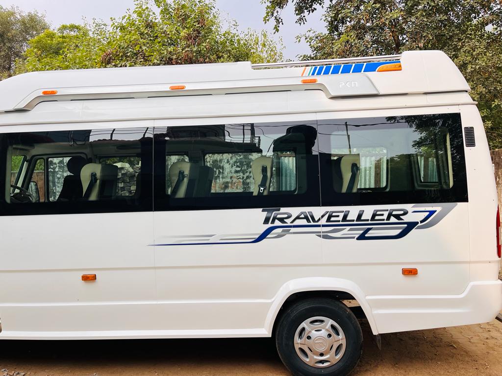 This vehicle provides seating for 16 passengers with wide, cushioned seats and a clean interior. Perfect for Varanasi city tours, nearby pilgrimage destinations, corporate trips, and outstation travel. A professional driver ensures safety and timely arrival.